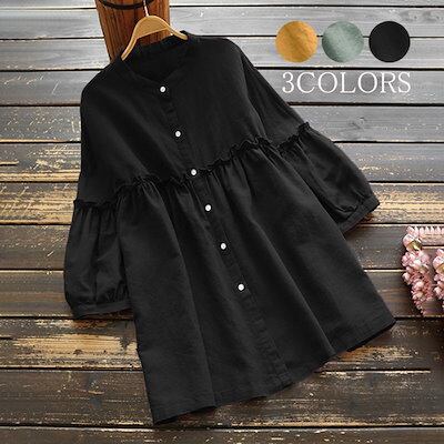 チュニック レディース ロング 長袖 チュニックワンピース ロングシャツ シャツ ロング丈 シャツブラウス チュニック トップス 無地 春 アウター 羽織 フリル 切替 大きいサイズ 体型カバー カジ