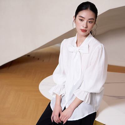 【CY.上品】通勤 ブラウス リボン 綺麗 シフォンブラウス 長袖 レディース ブラウス