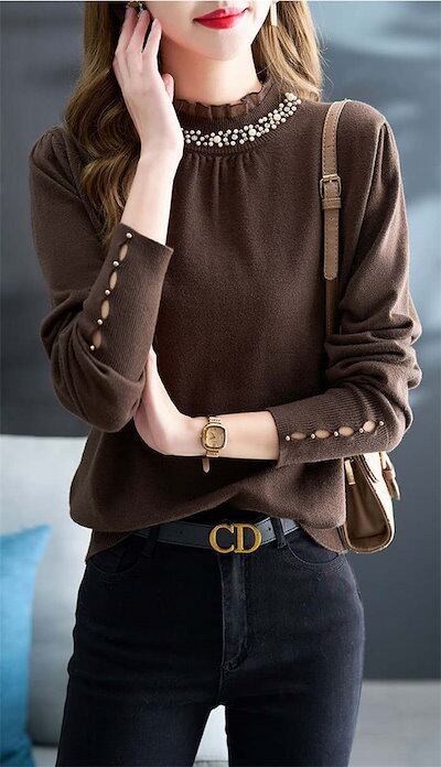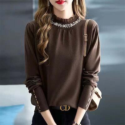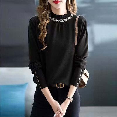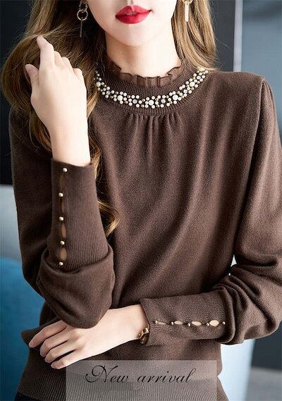 ニットセーター トップス レディース ニット インナーニット ハイネック ゆったり セーター 暖かい 長袖 フリル パール ハイネック タートルネッ プルオーバー 重ね着 肌着 リブニット ニットウェ