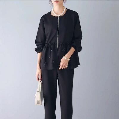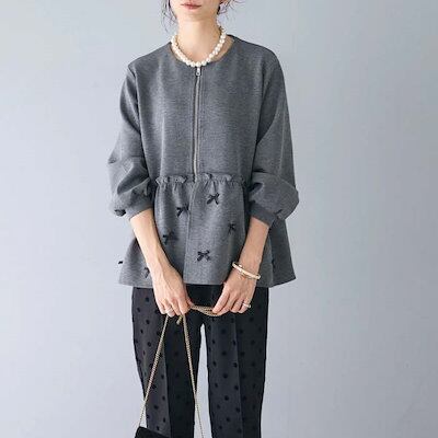 パーカー レディース スウェット トレーナー ジップ ジャケット ノーカラー アウター トップス 前開き 春 秋 冬 長袖 フリル フレア 可愛い 羽織り 通勤 おしゃれ シンプル きれいめ ファスナ
