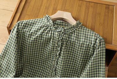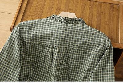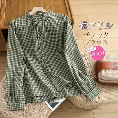 ブラウス レディース シャツ 長袖 ギンガムチェック 襟フリル シャツブラウス トップス ブラウスチュニック チェック柄 キレイめ カジュアル 森ガール シンプル 春 秋 大人可愛い 大きいサイズ ゆ