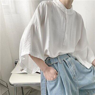 ブラウス シャツ レディース 2025韓国ファッション 初夏 薄手 半袖シャツにデザイナーズ五分袖トップス 男女兼用
