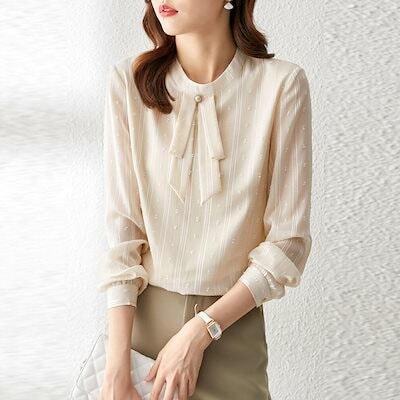 ブラウス シャツ レディース 春夏新作 韓国ファッション ブラウス シャツ レディース 立ち襟 長袖 シフォンシャツ 着痩せブラウス シャツ レディース