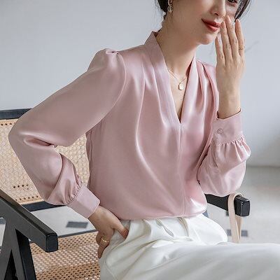 【最安値に挑戦】今っぽシアーシャツ 長袖 白シャツ女性Vネックドレーププロ気質トップス 韓国 ブラウス レディースファッション オフィス カーディガン