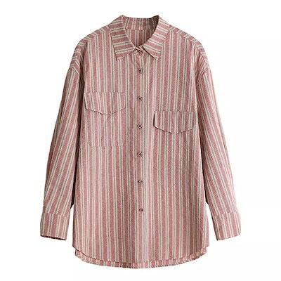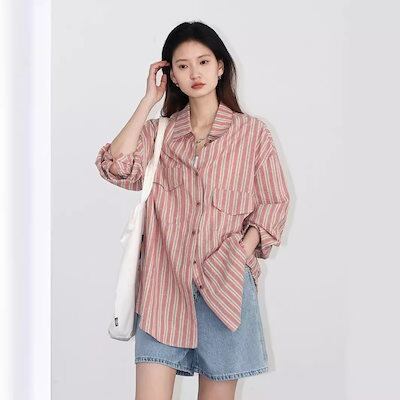 今っぽシアーシャツ 長袖 春夏の新作レトロな開襟縦縞シャツトップスゆったりシャツ女 韓国 ブラウス レディースファッション オフィス カーディガン