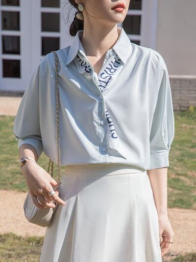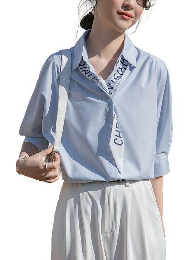 今っぽシアーシャツ 2025夏の新作五分半袖 白シャツ女ゆったりしわ防止シャツ上着 韓国 ブラウス レディースファッション オフィス カーディガン