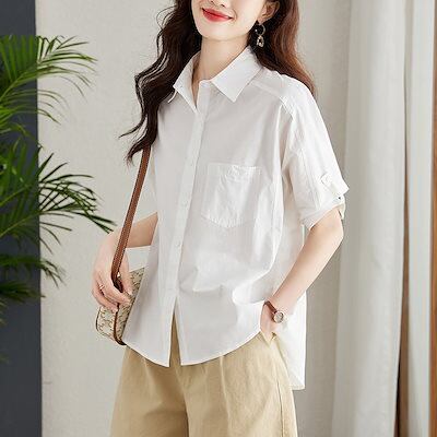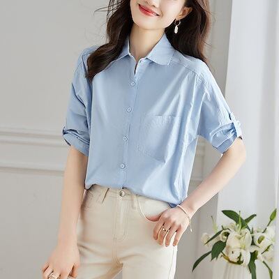 今っぽシアーシャツ 純綿シャツ女五分袖半袖夏の新作上着純綿シャツ 韓国 ブラウス レディースファッション オフィス カーディガン