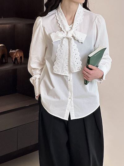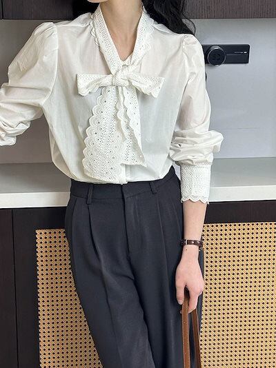 2025新入荷 春 韓国 シャツ長袖 レディース リボン白トップス 今っぽシアーシャツ ブラウス レディースファッション オフィス カーディガン