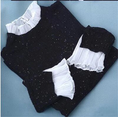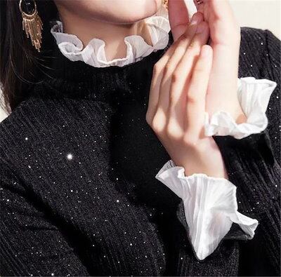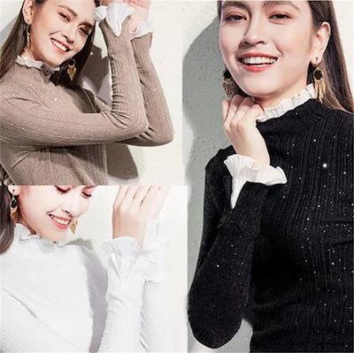 独特の存在感激安セール 大きいサイズ レディース 新作 レースレース フェイクレイヤード? トップス 長袖 フリルボトミングシャツ