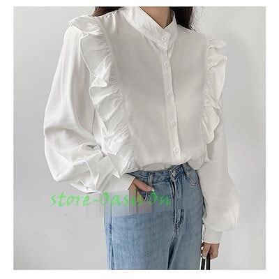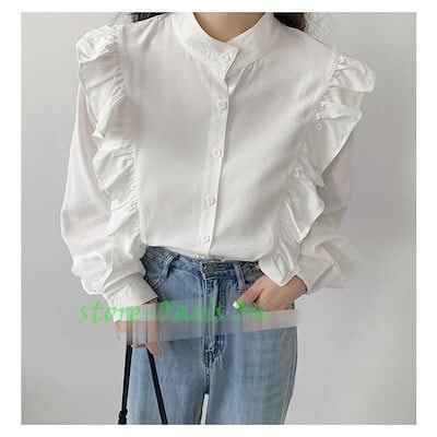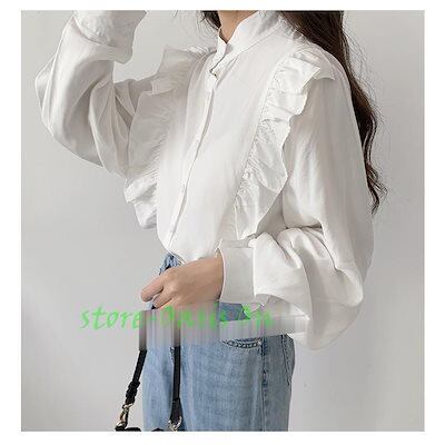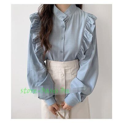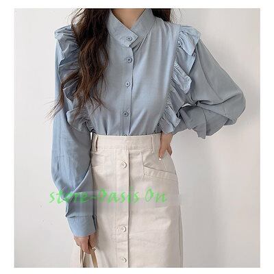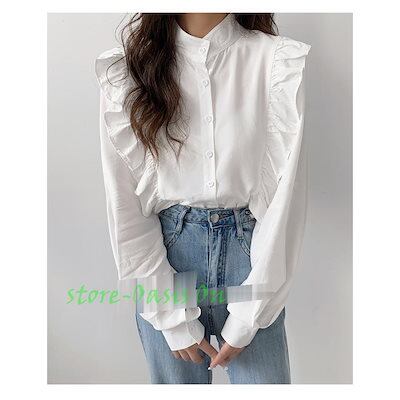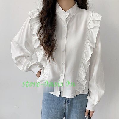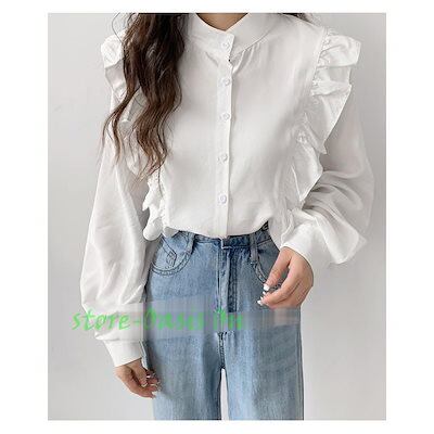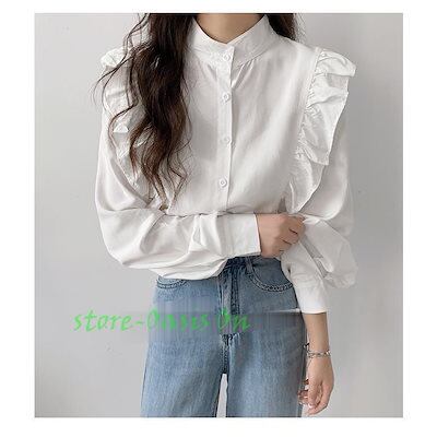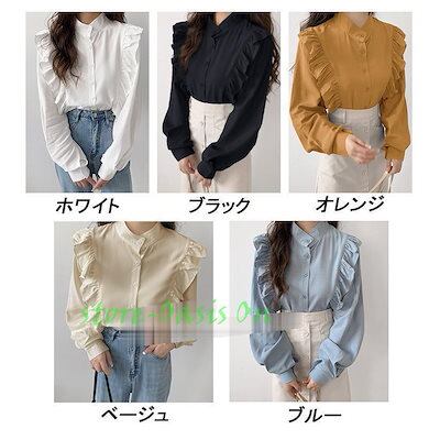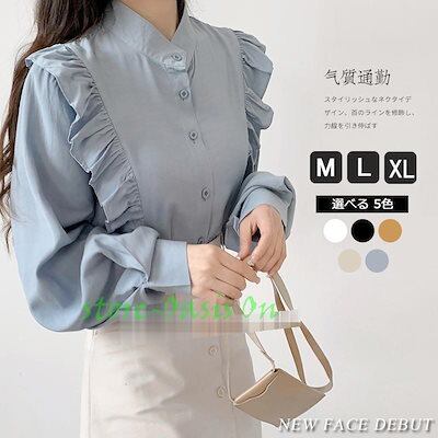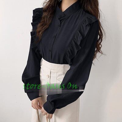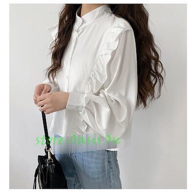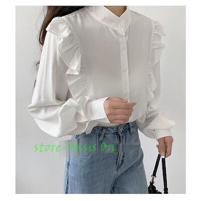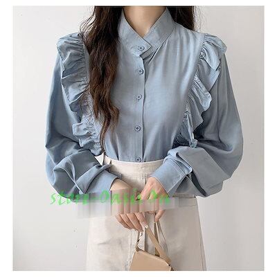 今日限りで!ブラウス レディース 長袖ブラウス 40代50代 春シャツ おしゃれ トップス 韓国風 フリル デザイ感 気質 通勤OL 上品 無地 着痩せ ゆったり 全5色 コーデ 春服
