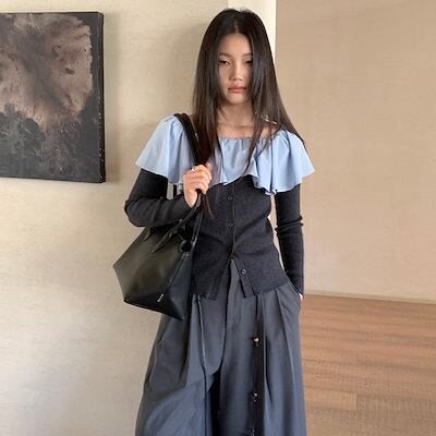 エフワンFONE Jianhe 2025 春新作 フリル ニット セーター レディース フレンチステッチデザイン ワンショルダー トップス 2918