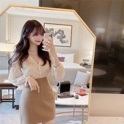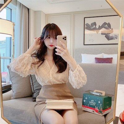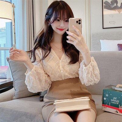 ブラウス レディース シャツ ブラウス シフォン レース フリル パフスリーブ 長袖 tシャツ