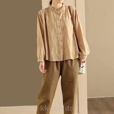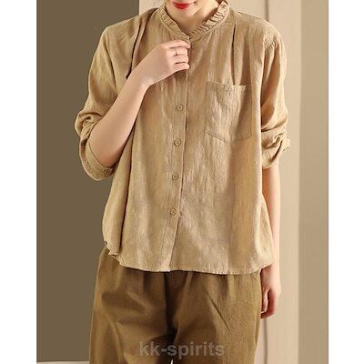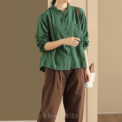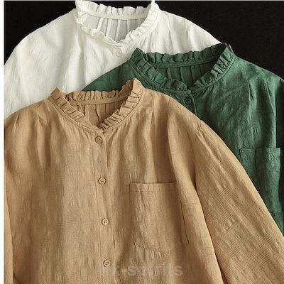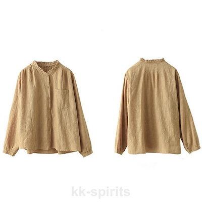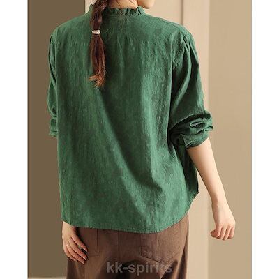 人気の新作,レディース ブラウス 長袖 綿 シャツ フリル スタンドカラー 凹凸 花柄 フラワー立襟 ゆったりサイズ コットン 模様織 ジャガード 無地ライク ゆったりシルエッ