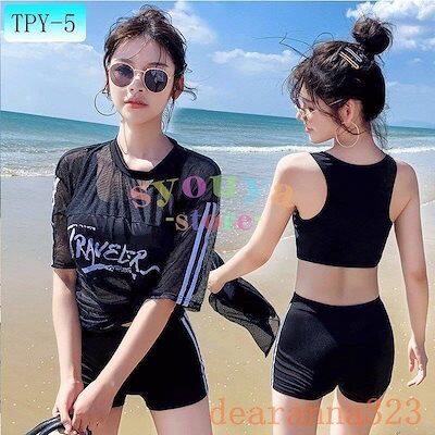 水着レディース体型カバー3点セット2wayオフショルダートップスぽっちゃりバックフリル20代30代40代可愛い水着