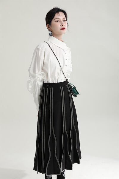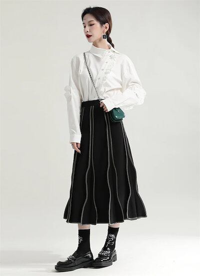早い者勝ち トップス 24 フリル 非対称襟 中長セクション レディース シャツ 上着 長袖 改良シャツ ブラウス