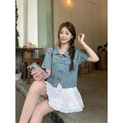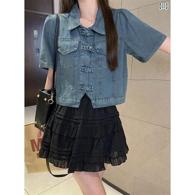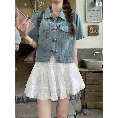 ミニスカート セットアップ レディース カジュアル 夏 スカート おしゃれ 女性 ニッチ プレートボタン 半袖 パンツ トップス ケーキ フリル
