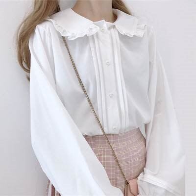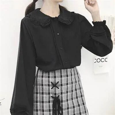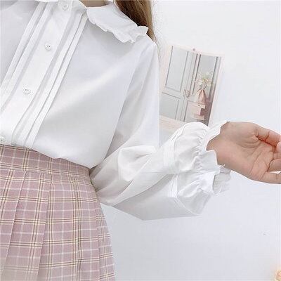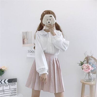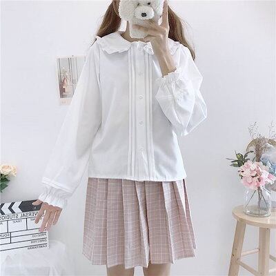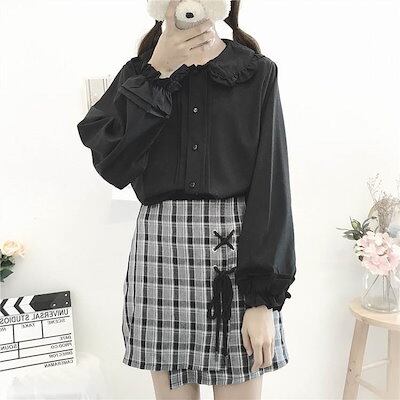 新作入荷トップス レディース ブラウス 個性的 長袖 襟付き 丸襟 フリル 無地 白 黒 S M L 春 夏 秋 上品 きれいめ おしゃれ シンプル カジュアル ナチュラル フェミニン 大人可愛い
