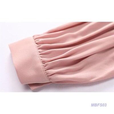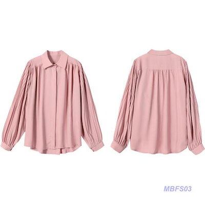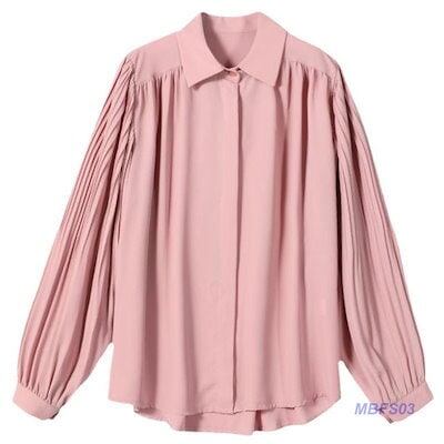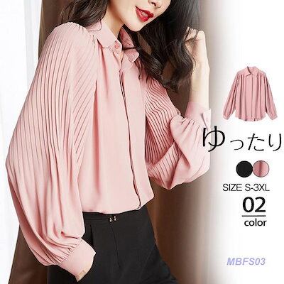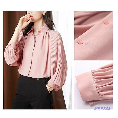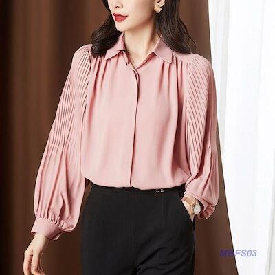 ブラウス レディース シャツ 長袖 フォーマル 開襟 プリーツ パフスリーブ フリル オフィスカジュアル ビジネス 着痩せ 通勤 フェミニン 上品