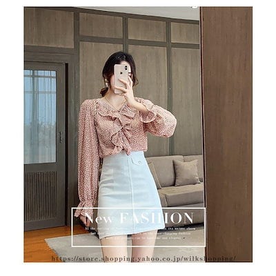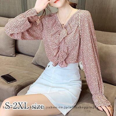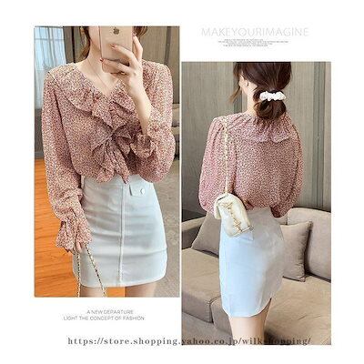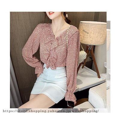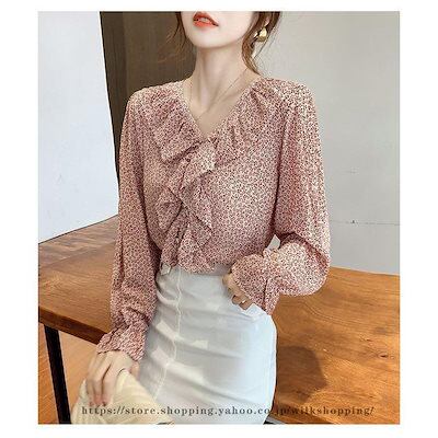 ブラウス シャツ 40代 レディース 春新作 長袖 Vネック 通勤 韓国風 トップス シフォン ドット柄 きれいめ フリル 50代 30代 オシャレ 大人 ゆったり