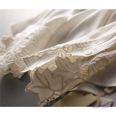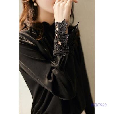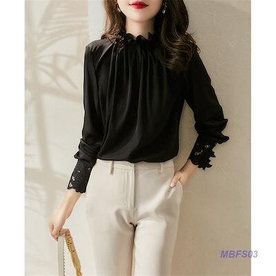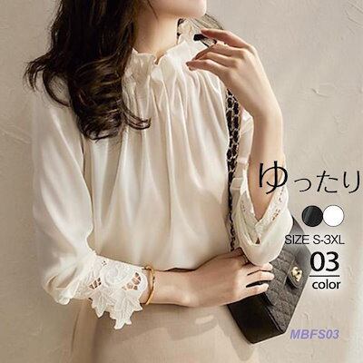 ブラウス レディース シャツ 長袖 レース シフォン 綿 フリル シースルー ハイネック 無地 ゆったり 花柄 薄手 フェミニン 通勤 春夏 高級感