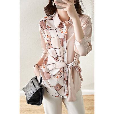 チュニック Tシャツ ブラウス レディース オフィス 長袖 秋 40代 トップス シャツ リボン 花
