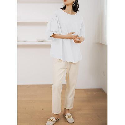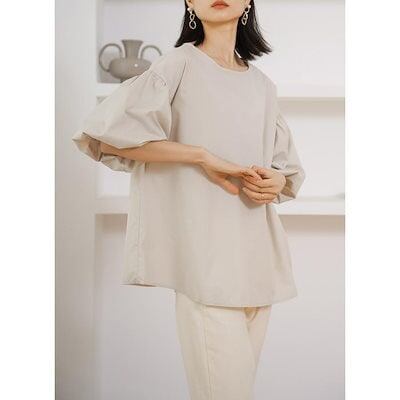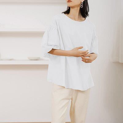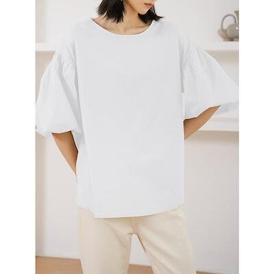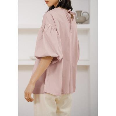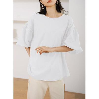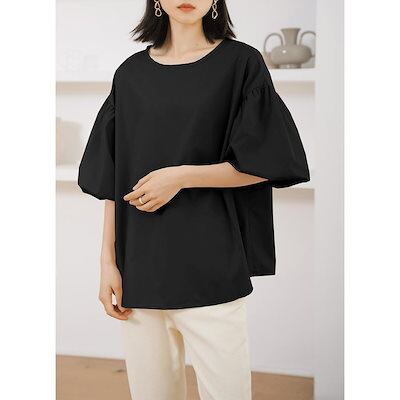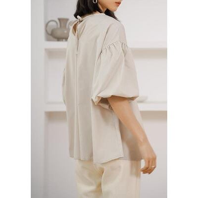 今日限りで!!ブラウス レディース ボリューム袖 シャツ クルーネック 五分袖 バックリボン バルーンスリーブ プルオーバー ラウンドネック ドロップショルダー ト