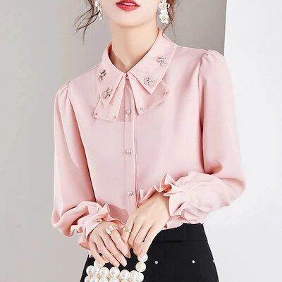 2枚購入で 2oo円FF!福袋25今っぽシアーシャツ韓国ファッション ブラウス シャツレディース 服 ベビーネックシャツ長袖シャツフランス シフォンシャツの上着 通勤 フレンチリボントップス インナー