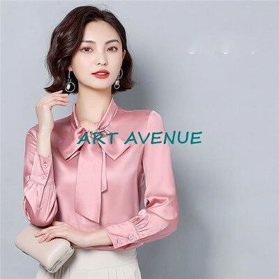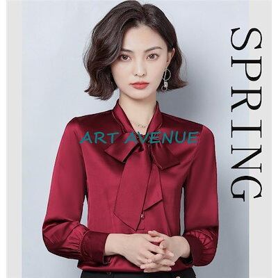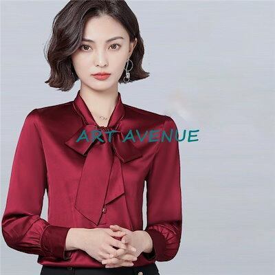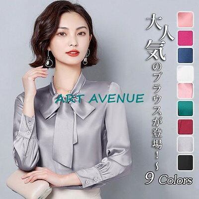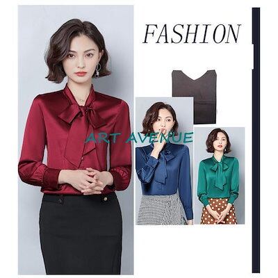 新品の買い占め シャツ ブラウス レディース オフィス シルエット 長袖 リボン ビジネス 通勤 トップス 高級感 vネック 事務服 スーツ 上品