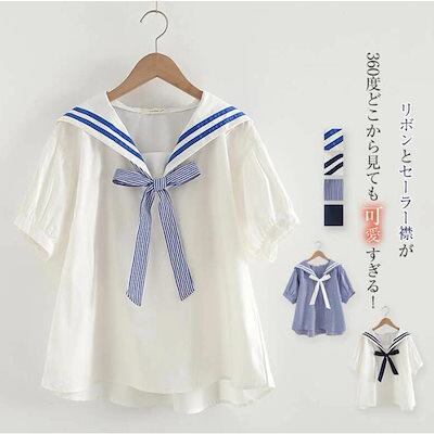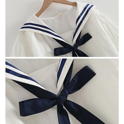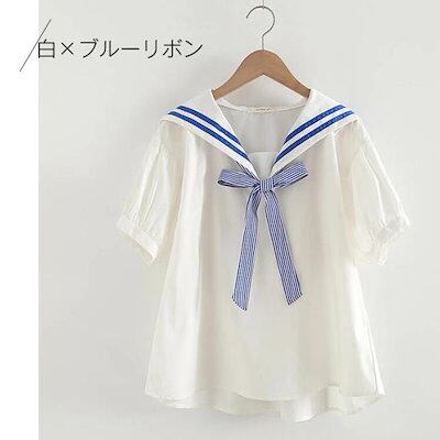 新品の買い占め セーラーカラー シャツ ブラウス レディース 半袖 綿 tシャツ 無地 白 リボン付き シャツブラウス 半袖 レディース 春 夏 tシャツ