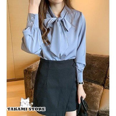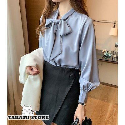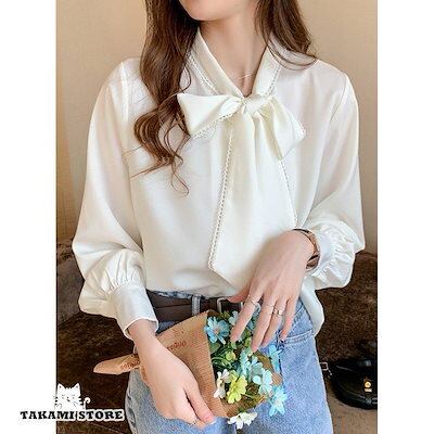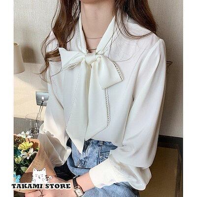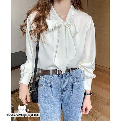 秋 春 白 インナー スーツ 3L 大きいサイズ シャツブラウス ボウタイリボンブラウス 長袖 レディース トップス ブラウス ボウタイブラウス