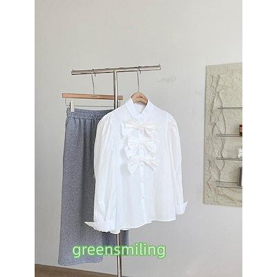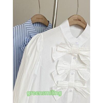 ブラウス レディース トップス シャツ 長袖 ストライプ リボン 無地 白シャツ 秋 春 大人 可愛い 通勤 通学 デート 旅行 薄手シャツ おしゃれ ホワイト ブルー