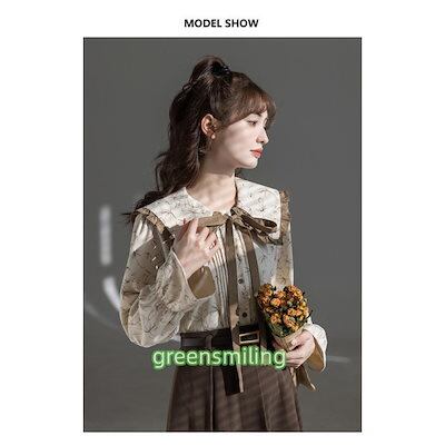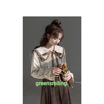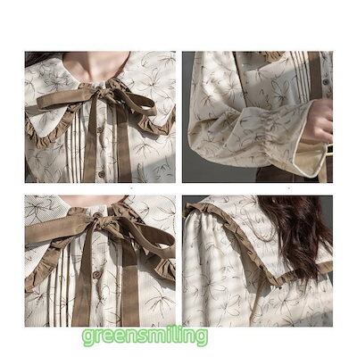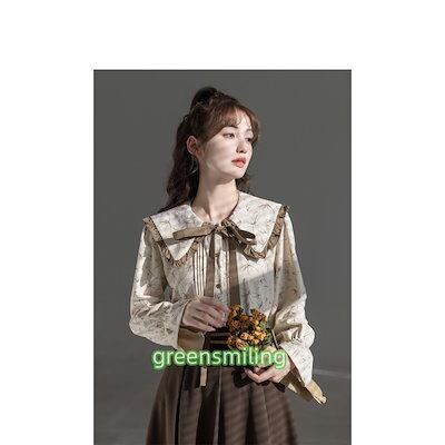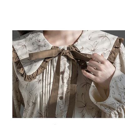 ビッグカラー ブラウス 柄 フリルカラー 襟 長袖 襟付 シャツ レディース リボン トップス 大人 可愛い きれいめ 長袖シャツ ボリューム袖