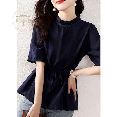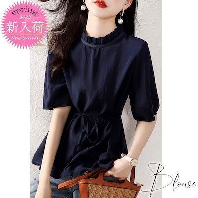 人気商品ブラウス レディース 40代 春夏新作 半袖ブラウス オシャレブラウス シフォンTブラウス リボン 韓国風トップス 大人 通勤 ゆったりtシャツ 30代 50代 カジュアル