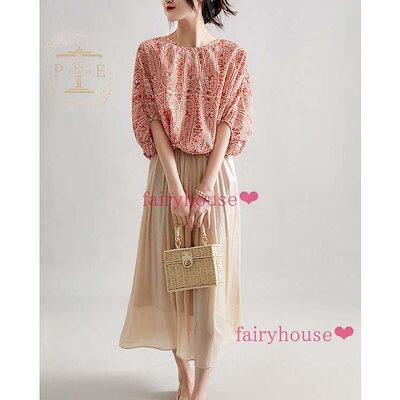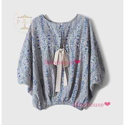 今月のみ ブラウスレディース40代 夏五分袖ブラウス オシャレブラウス エスニック風プリントTブラウス リボン ドルマンスリーブ パフスリーブトップス ゆったりtシャツ