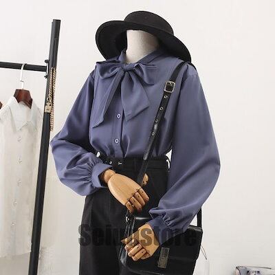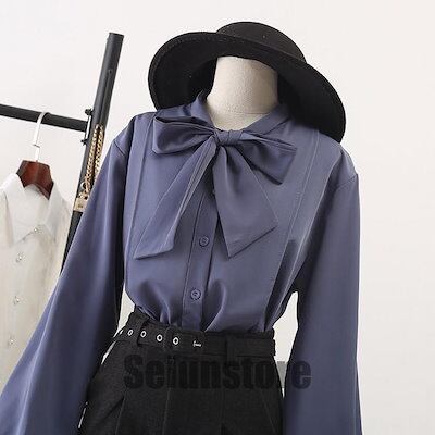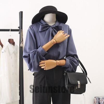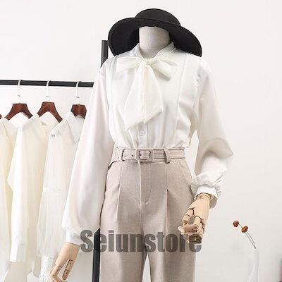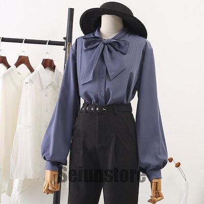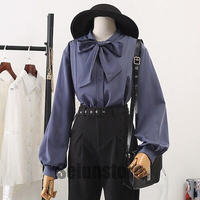ブラウス レディース 春秋 おしゃれ ブラウス 大きいサイズ シフォン 長袖シャツ 無地 リボン OL通勤 着痩せ キレイめ OL エレガント