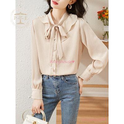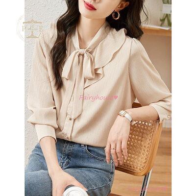 ブラウス レディース きれいめ 40代 春秋新作 オシャレブラウス 無地 シャツ リボンネック 大きいサイズ 長袖 トップス 大人 通勤 30代 50代
