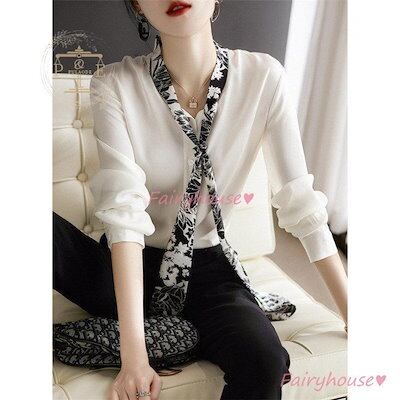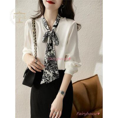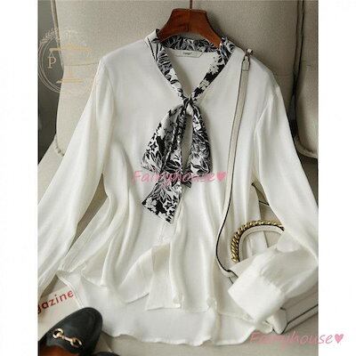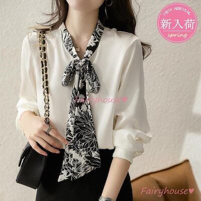 ブラウス レディース きれいめ 40代 春夏新作 オシャレブラウス 白シャツ 無地 シャツ リボンネック 長袖 トップス 大人 通勤 30代 50代