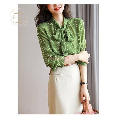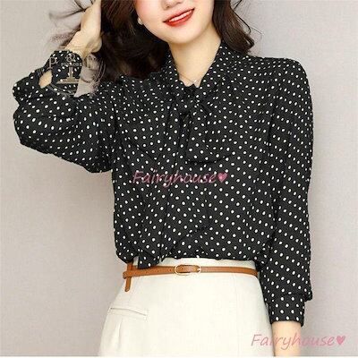ブラウス レディース きれいめ 40代 春秋新作 オシャレブラウス ドット柄 シャツ リボンネック 長袖 トップス 大人 通勤 30代 50代