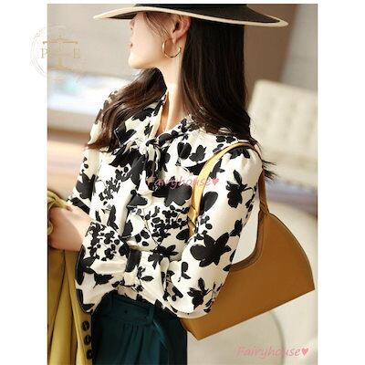 ブラウス レディース きれいめ 40代 長袖 トップス とろみシャツ 花柄 ゆったり きれいめ 着痩せ リボンネック 春夏 大人 おしゃれ 通勤 30代 50代