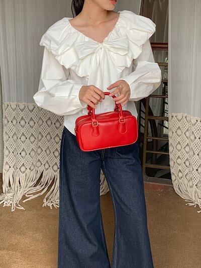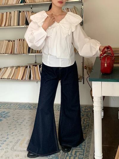 2025春夏トップス シャツ リボン Vネック フリル 長袖 ゆったり 秋 白 ホワイト おしゃれ かわいい ガーリー キュート 甘め キレイめ 韓国ファッション レディース お出かけ