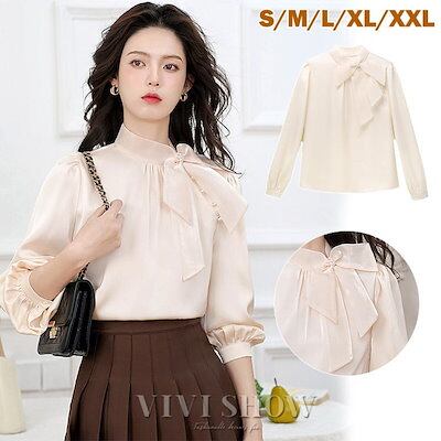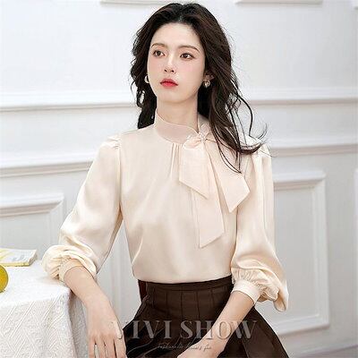 今日のおすすめ ボウタイブラウス レディース シャツ トップス リボンタイブラウス 長袖 切替 シャツ ブラウス 無地 オフィスカジュアル 春 夏 秋 大人