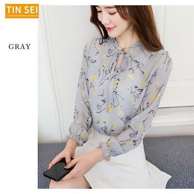 今月の販促,ブラウス レディース 柄 シャツ 長袖 ブラウスシャツ 秋 冬 秋冬 シフォン フラワー リボン チュニック 大人 ス 20代 30代 40代 ママ