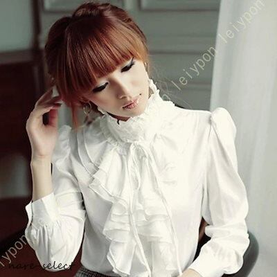 当店の新商品,ブラウス フリルブラウス フリル 立ち襟 リボンタイ レディース 長袖 ホワイト ブラック ファッション 可愛い エレガント レトロ オシャレ ふんわり 秋物 白