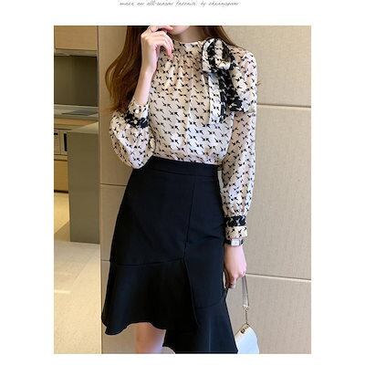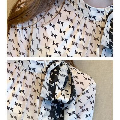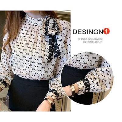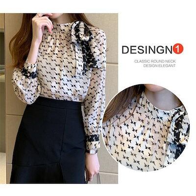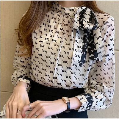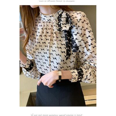 人気の新モデルが登場!ボウタイブラウス ブラウス レディース 長袖ブラウス 春秋 オフィスブラウス リボンネック プリント オシャレブラウス シフォントップス 韓国風 大人 通勤