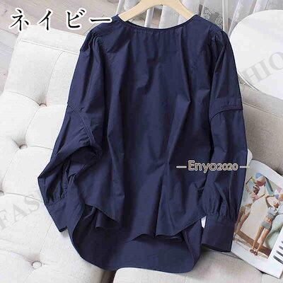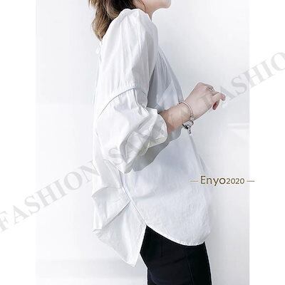 人気の新モデルが登場!ブラウス シャツ レディース トップス 長袖 ゆったり 無地 20代30代 不規則 カジュアル 大きめ 40代50代 オフィス 通学通勤 ネック後ろリボン付き 可愛い 大人