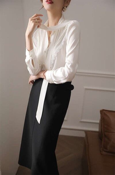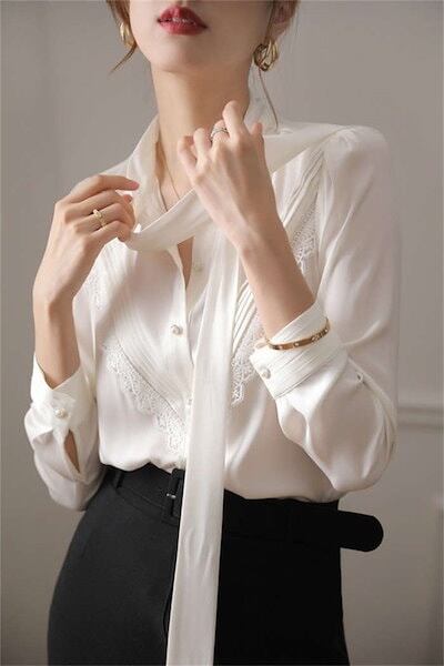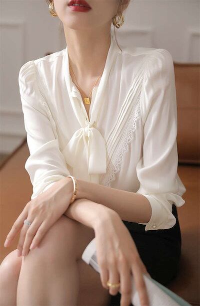 ブラウス シャツ インナー レディース トップス スーツインナー ビジネススーツ 白シャツ 長袖 ボウタイ リボン リボンタイ ボウタイリボン レース オフィスカジュアル フォーマル 上品 きれいめ