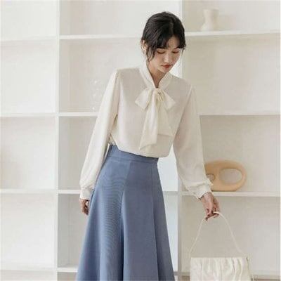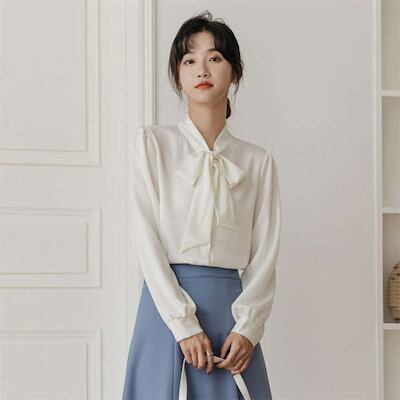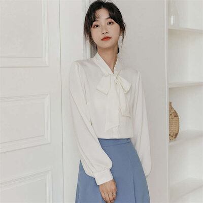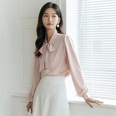 ブラウス レディース トップス シャツ 白シャツ ボウタイカラー インナー スーツインナー ビジネススーツ 春夏 秋冬 長袖 きれいめ ボウタイ リボン リボンタイ ボウタイリボン 洗濯可 シーズン着