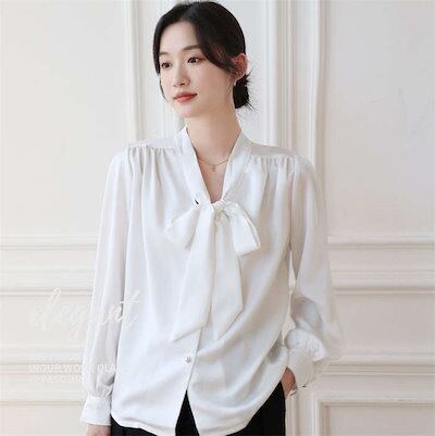 ブラウス ボウタイ レディース トップス シャツ きれいめ インナー スーツインナー ビジネススーツ 白シャツ ボウタイカラー 春夏 秋冬 長袖 リボン ボウタイ リボンタイ ボウタイリボン パールボ