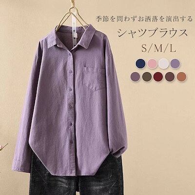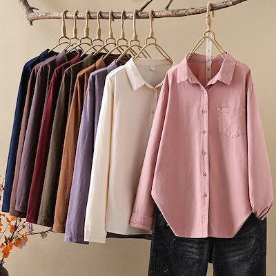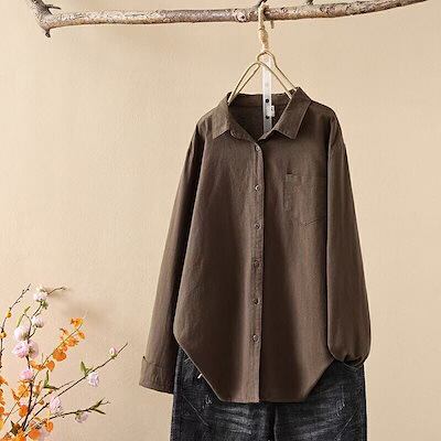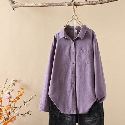 シャツ レディース シャツブラウス トップス 長袖 折襟シャツ コットン 秋 春 冬 長袖シャツ 前開き ボタン ブラウス 綿 柔らかい 無地 シンプル カジュアル 体型カバー 柔軟 着心地いい オフ