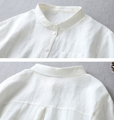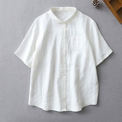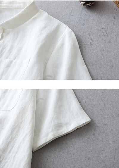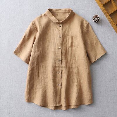 シャツ 半袖 綿麻シャツ ブラウス レディース 丸襟 夏 無地 ホワイト コットン 綿 柔らか シンプル 折り襟 ボタン留め 通気性 大きいサイズ 通勤 おしゃれ 大人 通学 ビジネス 春夏 可愛い